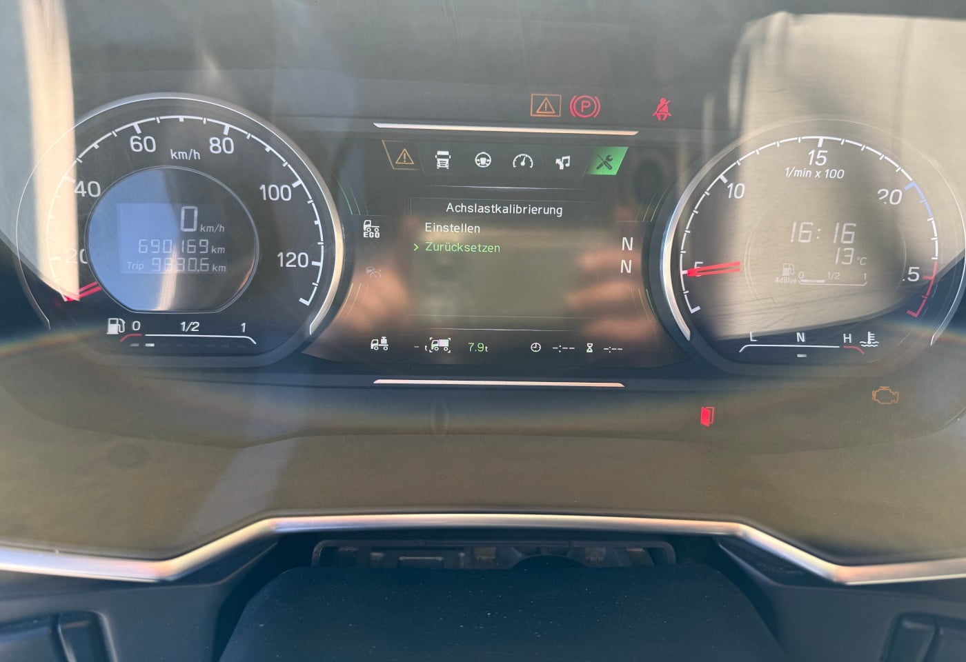 Freisprechanlage, Navigationssystem, ABS, EBS, ESP, Abstandsregeltempomat, Tempomat, Differenzialsperre, Spurhalteassistent