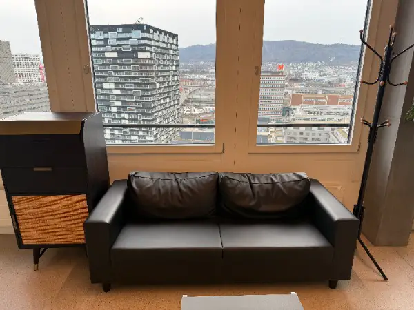 Verkaufe eine schlichte 2er-Couch in Schwarz (Lederlook) . Stand im Büro und wurde nur wenig genutzt. Optisch zeitlos, mit breiten Armlehnen ideal fürs Büro/Empfang, Gästezimmer oder als Zusatzsofa.