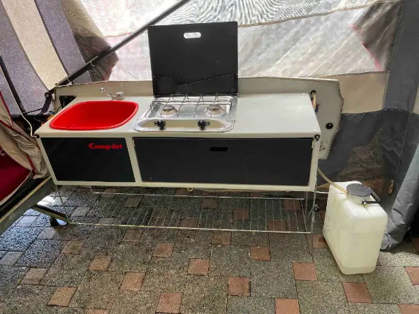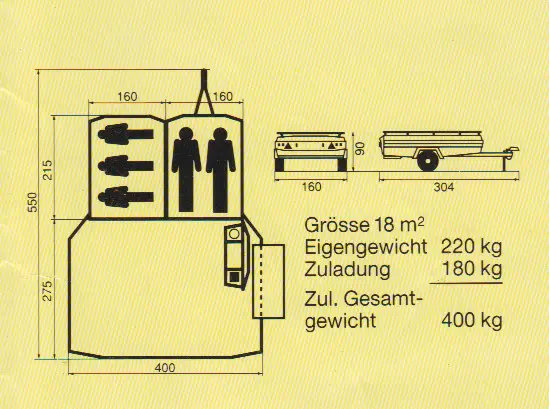 Auflaufbremse, Ersatzrad, Fahrradträger, Deichselkasten, Sonnensgel. Elektrische Beleuchtung, Wasserpumpe.