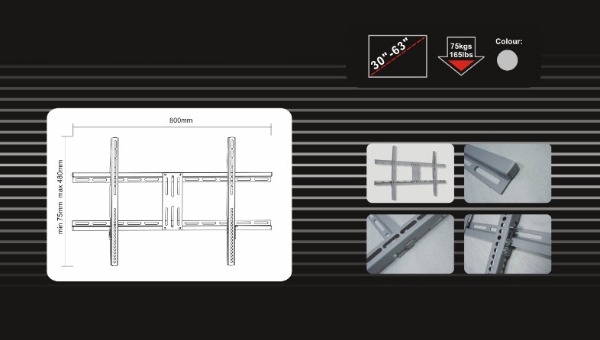 Robuste Stahlausführung zur direkten Wandmontage für Ihren LCD, Plasma oder Flachbildschirm. An die Halterung lassen sich 30Zoll bis 63Zoll Bildschirme mit einem maximal Gewicht von 75kg anbringen.