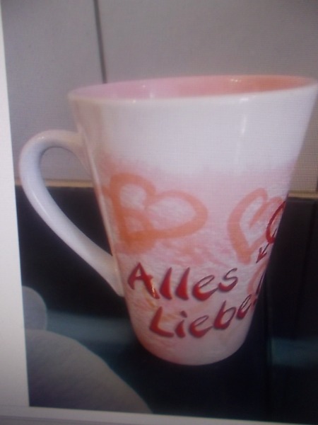 Die Tasse, zeigt sich einmal von vorne und einmal von hinten