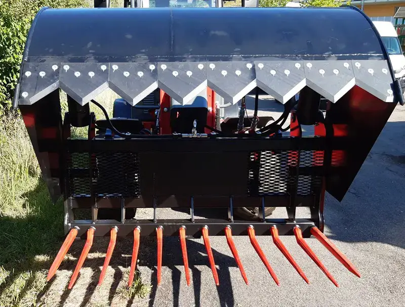 Siloschneidzangen Breite 1.10-2.50 m, bis 2 m mit 2 Zylinder- ab 2 m mit 3 Zylinder, auch mit Maiseinsatz möglich oder als Version Siloschneidschaufel. Bei Beschädigung können die Schneidklingen einzeln ersetzt werden. Sämtliche Aufnahmen für Merlo, Manitou, Kramer, Kubota, Claas, Case, Volvo, Atlas, Avant, Multi One, Liebherr, Cat, JCB, Terex, Weidemann, Schäffer, Schaeff, Dieci, Faresin, Giant, Thaler, Bobcat, Gehl, New Holland, Hitachi, Yanmar, Zettelmeyer, Weycor, Wacker, Euro 8 etc. und Sonderaufnahmen lieferbar.