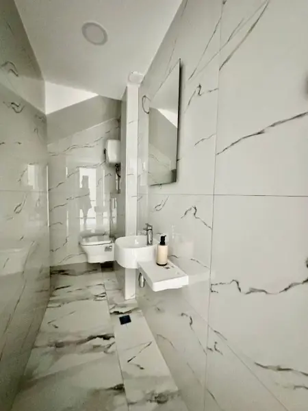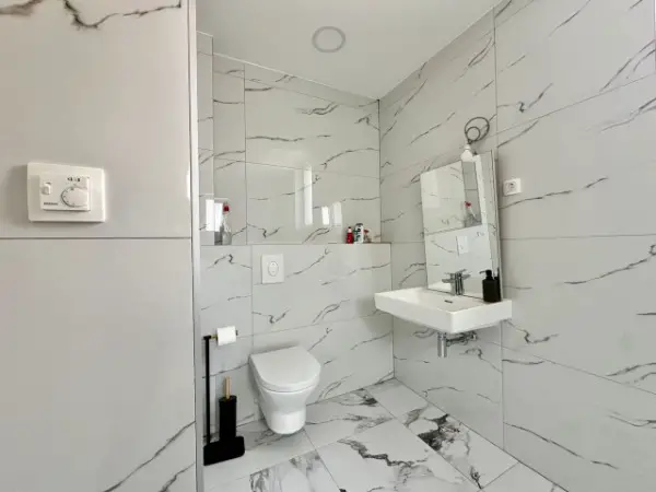 Im Obergeschoss befinden sich zwei Schlafzimmer und zwei Badezimmer.