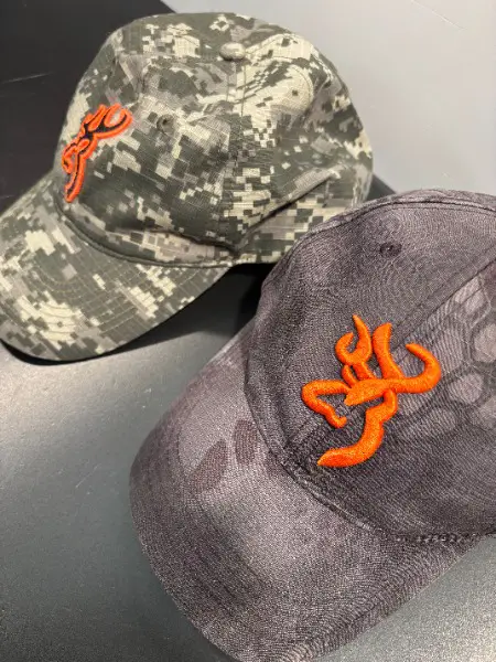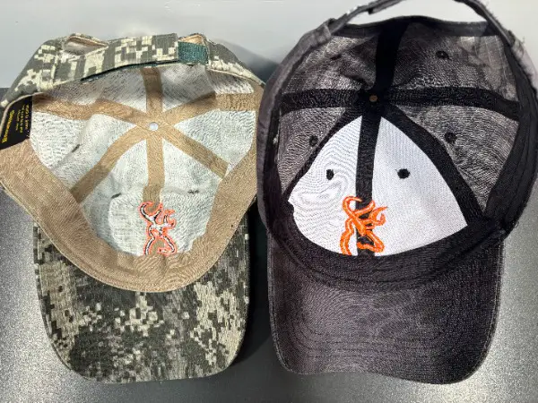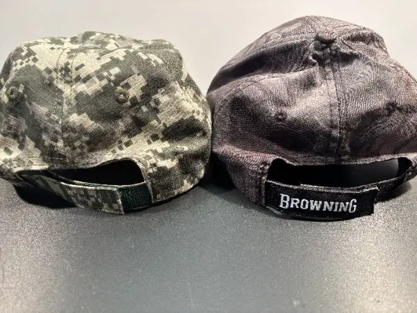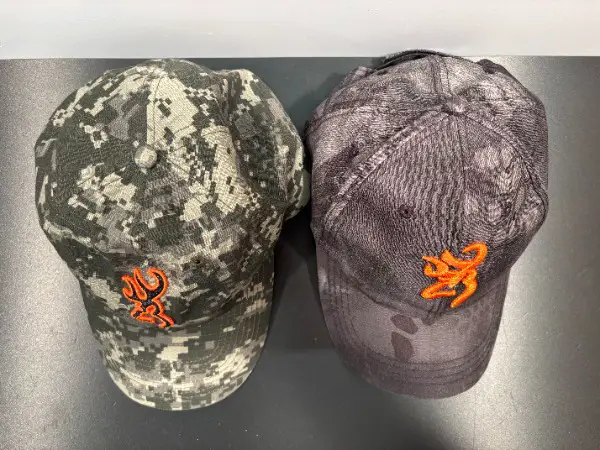 2x ORIGINAL NEUWERTIGE 2-3 GETRAGENES CAP TRUCKER HAT aus USA von dem bekanntem Waffen- Gewehrhersteller BROWNING - Amerika - United States of America // MIT DICKEM HOCHWERTIGEN STICK auf der Frontseite auf Camo Tarn Comouflage Hintergrund auf dickem hochwertigen RIP- STOP Stoff // seltenes HIGHLIGHT für Sammler von Waffen Gewehr Merchandising Sportschützen Jagd Pistole Munition Inerte Jäger Sket Trap Flinte oder exklusive Dekoration für Vitrine Tresor