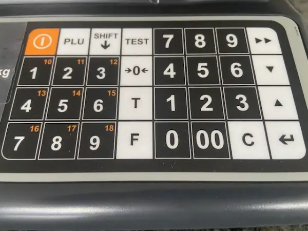 Verkäufer- und Käuferseite. Tastatur mit 32 Tasten,100 PLU, davon 9x2 Direkttasten