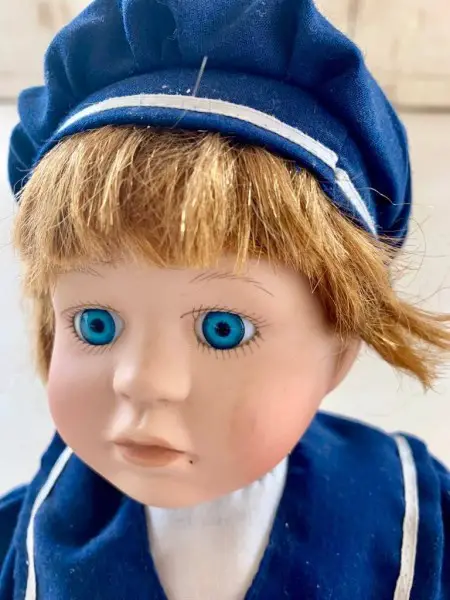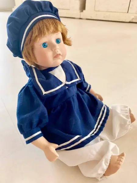 Sitzende Porzellan Puppe ANNE