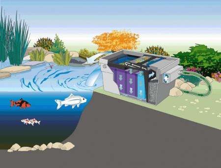 * Hocheffektiver Durchlauffilter für Teiche bis zu 140 m³