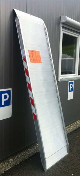 Verladerampe aus Aluminium, MPC4000.1000.1000. Totallänge 400 cm, Innenbreite 94 cm, Aussenbreite 100 cm. Tragkraft 1000 kg, Eigengewicht 78 kg.