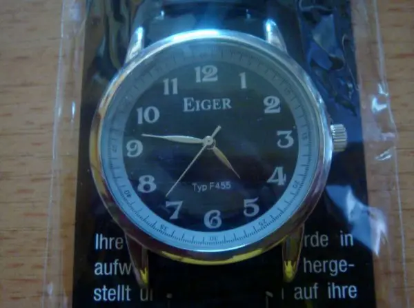 Schwarzes Zifferblatt.