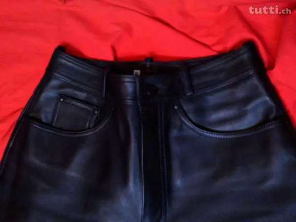 **Neuwertige, echt LederDamenjeans von IXS. Zwei bis dreimal getragen. 1/2 Bundweite misst 36 cm, Schrittlänge Innenseite gemessen, misst 85 cm. Senden kostet Dich Fr. 10.- oder bei motowear-secondhand in 4146 Hochwald abholen, ein Kaffee ist dir sicher.**
