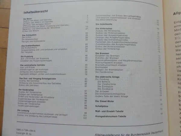 Inhaltsübersicht siehe Foto.