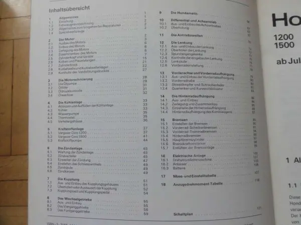 Honda: Honda Civic 1200 und 1500 ab Juli 1972 mit Mass- und Einstelltabelle, Anzugsdrehmoment-Tabelle, elektrische Anlage, etc.