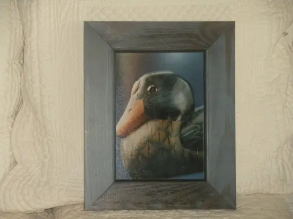Tableau avec canard de chez nous dans cadre en bois de couleur marine largeur du bord du cadre 4cm longueur 24cm largeur 19.5cm Fr 12.-