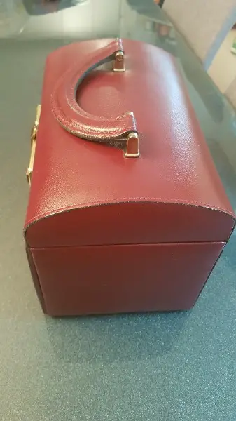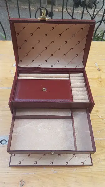 aus rotbraunem Leder, mit 3 herausnehmbare Laden mit Samtauskleidung
