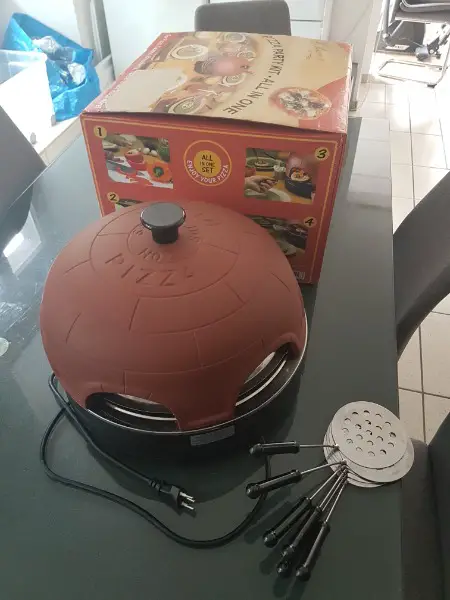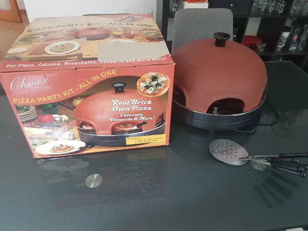 Pizza-Dom aus Terracotta für sechs Personen, 1000 Watt Für Pizzen, Calzone sowie Desserts Inklusive sechs Inox-Pfännchen und