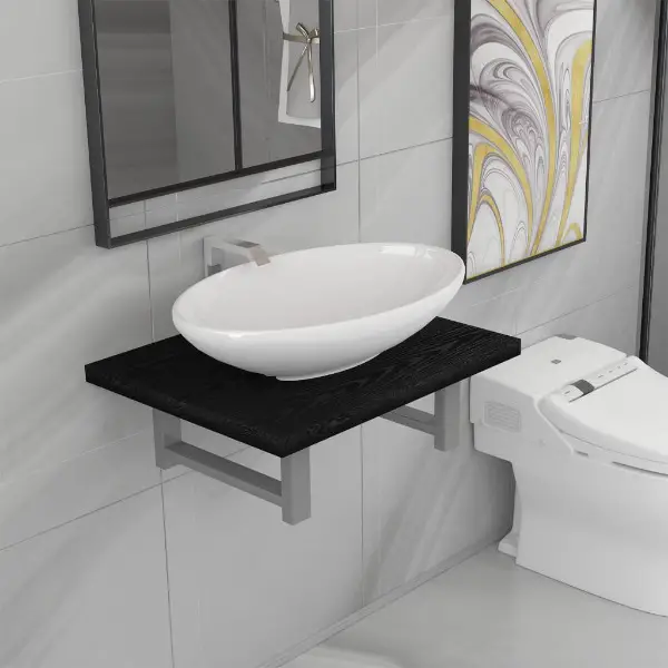 Wand montiert werden. Diese perfekte Kombination aus einem Wandregal und einem Keramikbecken wird zum neuen Hingucker in Ihrem Badezimmer. Bitte beachten Sie, dass der Abfluss nicht im Lieferumfang enthalten ist.