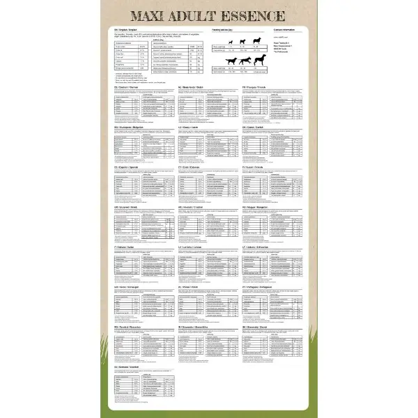 Hundefutter "Maxi Adult Essence Beef & Chicken" ist reich an Präbiotika, welche nicht nur die Darmgesundheit des Hundes fördern, sondern auch für eine gesunde Haut und Fell sorgen. Dank speziell ausgewählten Rohstoffen und der Präparationsmethode ist diese Trockennahrung sowohl leicht verdaulich als auch ganz lecker. Das Hundefutter enthält wesentliche Proteine, Fettsäuren, Mineralien, Spurenelemente sowie Vitamine im richtigen Mischungsverhältnis und bietet daher Ihrem