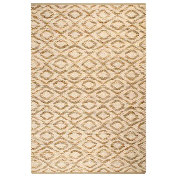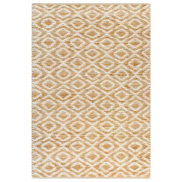 Handgewebter Teppich Jute Stoff 120 x 180 cm Natur und Wei..