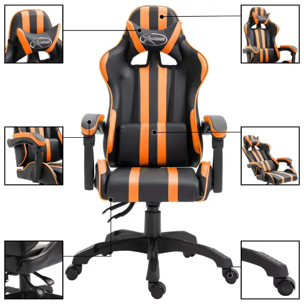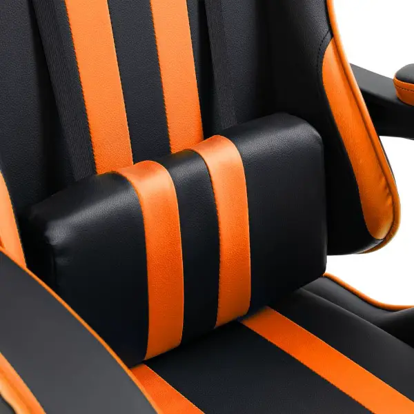 Der unverwechselbare und luxuriöse Gaming-Stuhl ist eine grossartige Ergänzung für Ihr Zuhause und Ihr Büro, wo immer hart gespielt oder gearbeitet wird. Eine hohe Rückenlehne mit ergonomisch gepolsterten Kissen, Rückenlehne, Armlehnen und Sitzplatte ermöglicht lange Spiel- oder Arbeitssitzungen. Das höhenverstellbare Design ermöglicht es Ihnen, die Sitzhöhe anzupassen und mehr Komfort und eine gesunde Ausrichtung der Wirbelsäule zu erzielen. Sie können den Stuhl in einen Lehnstuhl verwandeln, indem Sie die Rückenlehne nach oben und unten ziehen und in einer beliebigen Position für ein Nickerchen am Bürotisch oder nach intensives Spielen einstellen. Darüber hinaus sorgen ein um 360 Grad drehbares Design und der Verstellmechanismus für einen vielseitigen Bewegungsspielraum. 5 Nylon-Lenkrollen machen das Herumrollen einfach und leise.