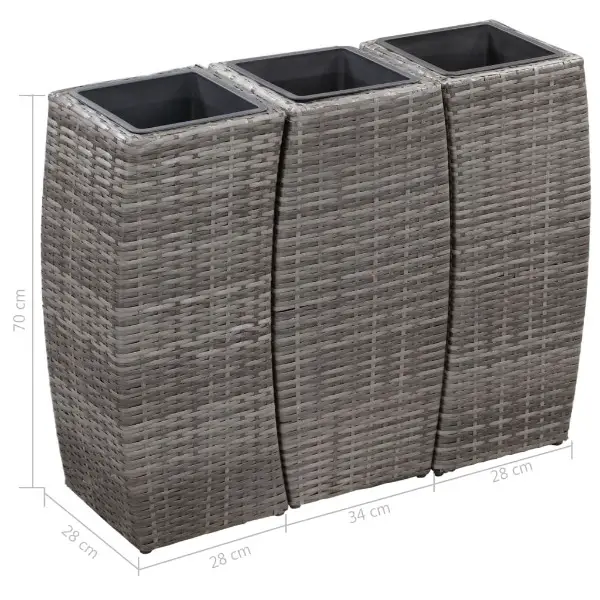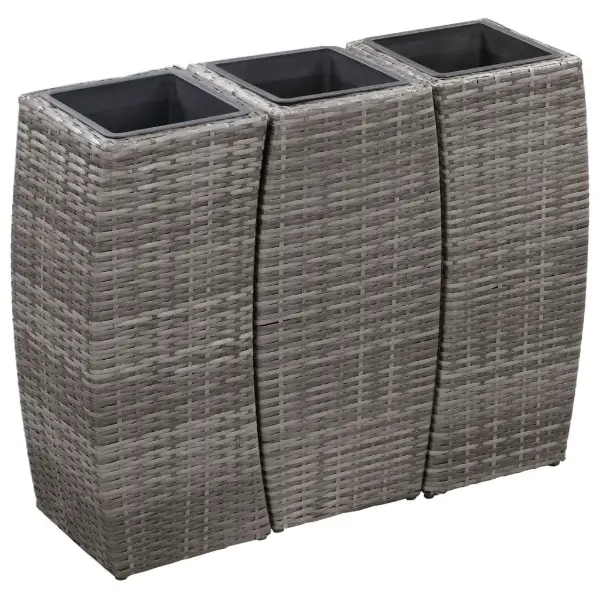 Pflanzkübel 3 Stk. Poly Rattan Grau