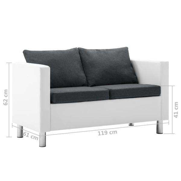 - Farbe: Weisses Sofa und dunkelgraue Kissen