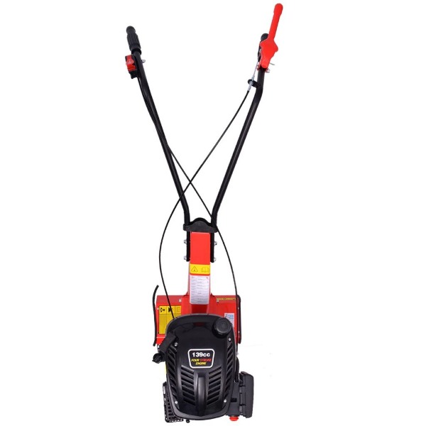 Gerät, mit dem Sie schwere Gartenarbeiten durchführen können. Das Gerät lässt sich schnell mit dem Rückstossstarter starten. Die gehärteten Stahlklingen reissen sich mühelos in den Oberboden. Das Führungsrad ermöglicht ein flexibleres Manövrieren. Die Benzinfräse wird bis zu 100 mm tief und 360 mm breit graben. Die