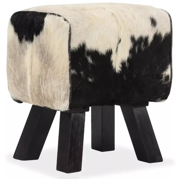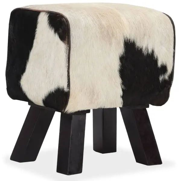 - Material: Echtes Ziegenleder (haarig) + Holzbeine