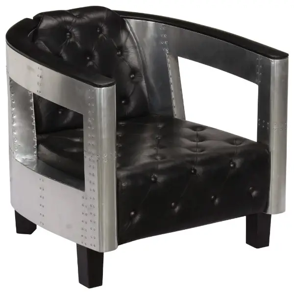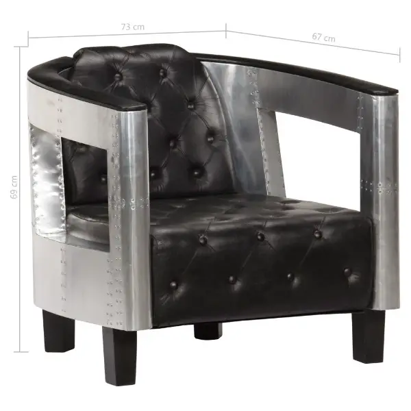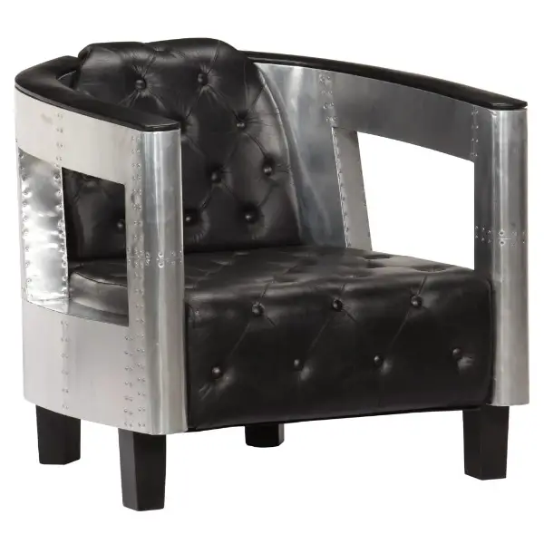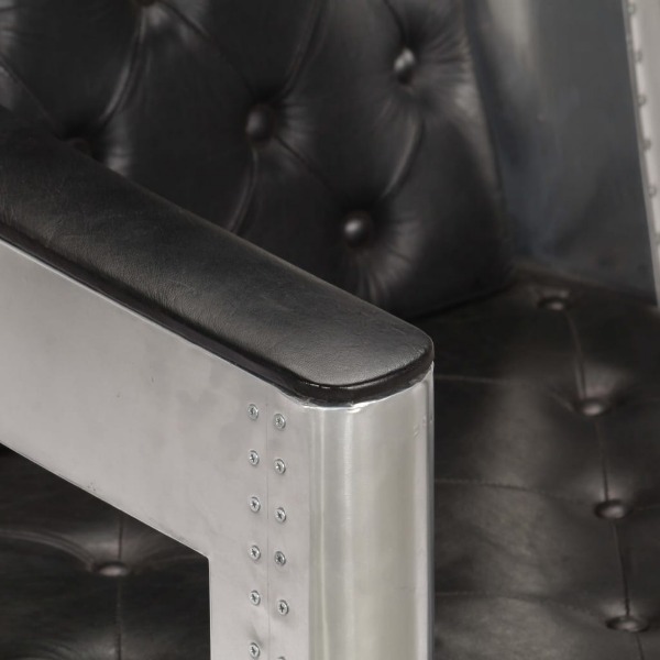Sofastuhl aus Echtleder verleiht Ihrem Zuhause einen Hauch von Luxus und bietet Ihnen zusätzlichen Komfort. Zusätzlich tragen die Aluminiumarmlehnen zu seiner Robustheit bei. Dank der Armlehnen und der dicken Polsterung aus Echtleder ist dieses