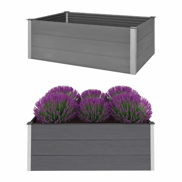 Kunststoff-Verbundwerkstoffen (WPC) gefertigt worden und ist daher sowohl langlebig als auch witterungsbeständig und für den Aussenbereich geeignet. Er bietet Platz für jede Menge Grünpflanzen und Blumen und bringt dank ausgefeiltem, modernem Design einen Hauch Eleganz in Ihren Aussenbereich. Der Zusammenbau ist kinderleicht.