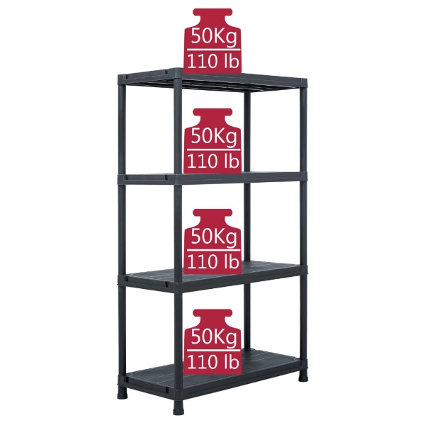 Dieses Stauregal kann auch im Wohnzimmer als Bücherregal oder Ausstellungsregal für Deko-Artikel sowie auf der Terrasse als Blumenregal eingesetzt werden. Das Regal besteht aus robustem, langlebigem Kunststoff und lässt sich daher ganz leicht mit einem feuchten Tuch reinigen. Zudem ist es auch für feuchte Umgebungen wie Küchen, Badezimmer, Lagerhallen sowie Keller bestens geeignet. Durch sein kompaktes Design wird das Regal begrenzten Raum optimal ausnutzen. Mit den mitgelieferten Montagematerialien lässt sich das Lagerregal ganz einfach montieren. Die Lieferung umfasst 2 Lagerregale.