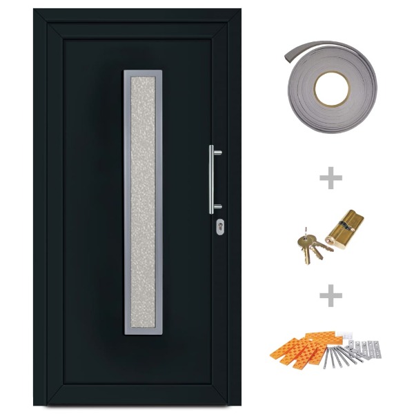 Diese Haustür bereichert nicht nur den Eingangsbereich Ihres Hauses, sondern sorgt auch für mehr Sicherheit für Ihr Zuhause. Es kombiniert elegantes Design mit hervorragenden technischen Eigenschaften. Die Tür misst 108×208 cm (B×H) . Diese Eingangstür ist mit einem hochwertigen Rahmen und einer hochwertigen Füllung, einer Aluminiumschwelle, verstellbaren 3D-Scharnieren (3 Scharniere pro Tür) , 5 Pilzkopfverriegelungen, Isolierverglasung und 1, 2 mm Stahlverstärkung ausgestattet. Darüber hinaus überzeugt die Aluminium-Haustür durch die robuste Qualität und den hohen Schliesskomfort. Sie erhalten einen kompletten Bausatz, da der Edelstahl-Ziehgriff und der Innengriff sowie der Profilzylinder, die