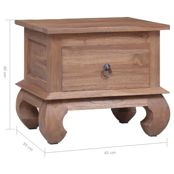 Innenraum einen Hauch von rustikalem Charme. Der Nachttisch besteht aus massivem Teakholz, das für seine aussergewöhnliche Festigkeit bekannt ist. Jeder Schritt des Fertigungsprozesses wird mit grösster Sorgfalt ausgeführt, sei es Polieren, Anstreichen oder Lackieren. Der Nachttisch hat eine robuste