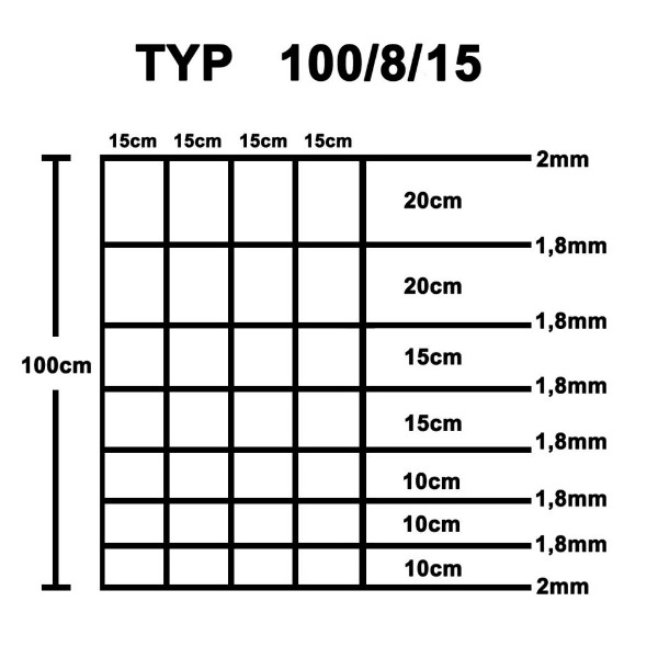 - Vertikaler Drahtabstand: 15 cm