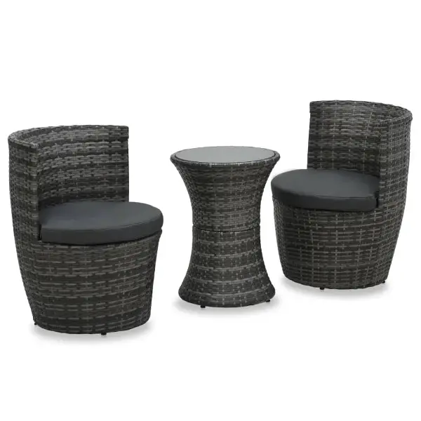 - Farbe: Graues Rattan + Anthrazit-Auflage + schwarze