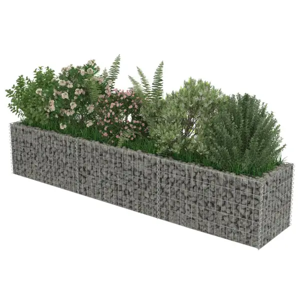 Mit diesem Gabionen-Pflanzkorb können Sie ein stabiles, aber dennoch stilvolles Blumen- oder Hochbeet anlegen, z.B. als Begrenzung in Ihrem Garten oder Hof. Der robuste Drahtkorb ist so konzipiert, dass er mit Steinen oder Kies gefüllt werden kann. Das Hochbeet wird aus rostfreiem und witterungsbeständigem, verzinktem Stahl hergestellt und ist daher sehr stabil und langlebig. Das Maschengitter wird durch Verschweissen der Quer- und Längsdrähte an jeder Verbindungsstelle noch mehr verstärkt und ist dadurch extra stabil. Bitte beachten Sie, dass die Steine und Pflanzen nicht im Lieferumfang enthalten sind.