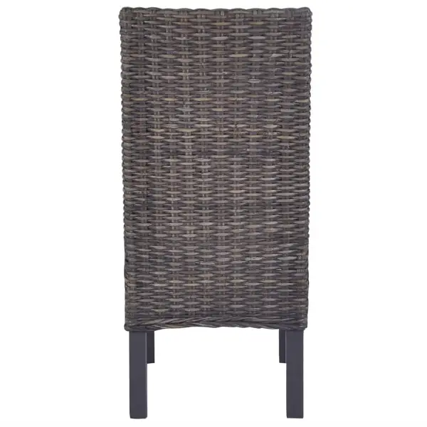 Mangoholz und die echte Webart machen die Stühle nicht nur strukturell stabil, sondern auch ästhetisch ansprechend. Die mit Rattan bezogenen Sitze sind sehr bequem und leicht zu reinigen. Wenn Sie auf der Suche nach etwas sind, das Ihre Küchen- oder Esszimmerdekoration ergänzt, wird dieses attraktive handgewebte