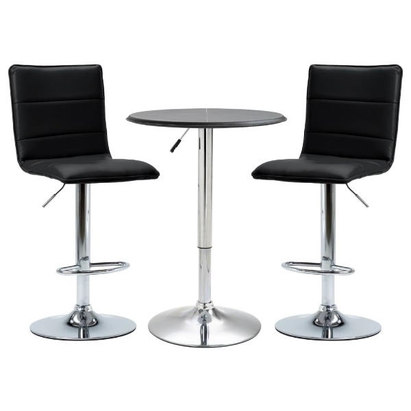 Kunstleder bezogen, um optimalen Sitzkomfort zu bieten. Das verchromte Stahlgestell bietet hohe Stabilität, während der integrierte Standfuss für zusätzlichen Sitzkomfort sorgt. Das ergonomische Design macht die Stühle sehr bequem, um Ihnen stundenlangen Sitzkomfort zu bieten. Dank des Gasdruckfeders können diese Barstühle einfach in der Höhe verstellt werden. Der Tisch und die Stühle sind einfach zusammenzubauen. Lieferung inklusive 1