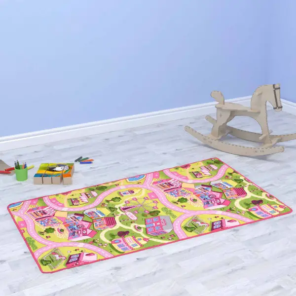 Teppich kann auch als Picknickmatte, Spielmatte, Campingmatte usw. zum Einsatz kommen. Die Spielmatte mit ihrem süssen Stadtmuster schafft eine malerische Kulisse. Der
