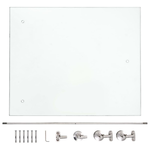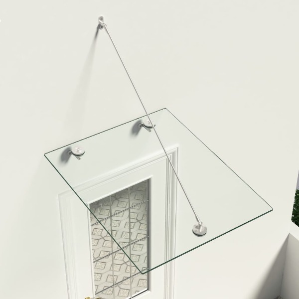 Glas- und Wandhalterungen sind aus hochwertigem Edelstahl gefertigt und tragen die langlebige Konstruktion. Dieses Design verbindet perfekt Modernität mit Funktionalität. Die unkomplizierte Installation und die pflegeleichte Oberfläche runden dieses Produkt ab. Mit den Abmessungen von 90×75×1, 2 cm (L x B x T) ist dieses Glasvordach das
