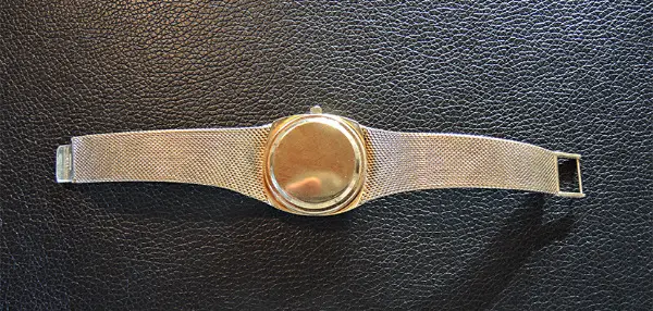 Gold 750, Herrenuhrarmband, electronic, Stimmgabel, Datum, satiniertes Zifferblatt, Stundenbalken, Zentralsekunde.