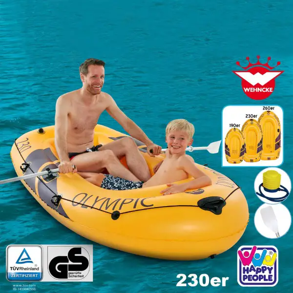 Ruderboot Olympic 230 von Happy People ist einfach aufzubauen und eignet sich ideal für verschiedene Freizeitaktivitäten auf Seen und ruhigen Gewässern während der warmen Jahreszeit. Dieses klassische