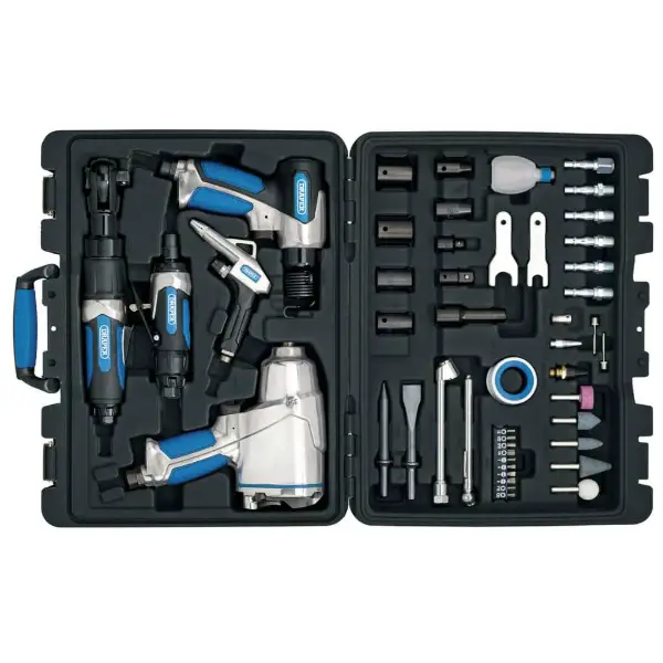 Dieses komplette Druckluftwerkzeug-Set von Draper Tools enthält eine Auswahl an beliebten Druckluftwerkzeugen (12" Druckluft-