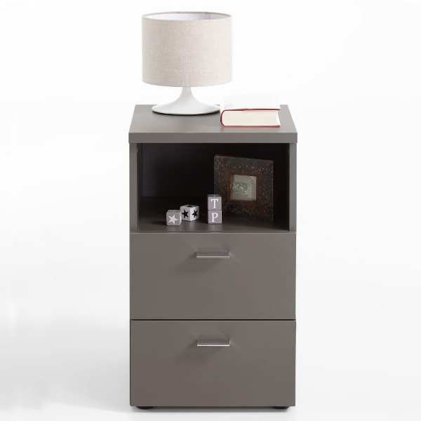 - Modern gestalteter Nachttisch mit 2 Schubladen und einem offenen