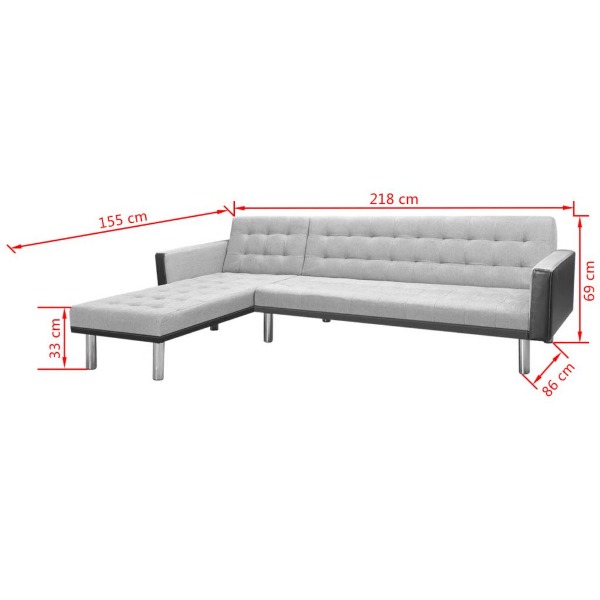 - Abmessungen des Sofas mit Liege: 218x155 x 69 cm (L x B x H)