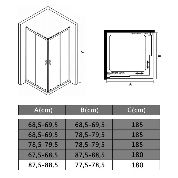 Badezimmer. Darüber hinaus ist die Duschabtrennung mit Schiebetüren versehen, die für einen einfachen Zugang sorgen. Die Montage lässt sich mit den mitgelieferten Montagematerialien einfach durchführen. Bitte beachten Sie, dass die Duschwanne nicht im Lieferumfang enthalten ist.