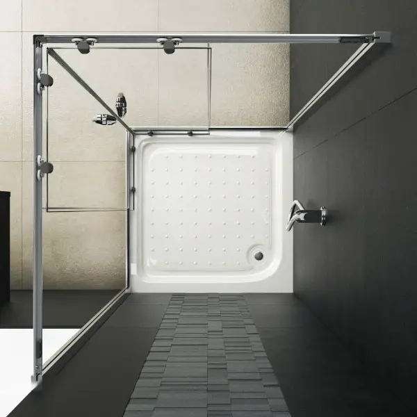 Unsere Duschkabine vereint Stil und Funktionalität und passt perfekt zu Ihrem Badedekor. Der matt verchromte Rahmen, die Seitenpaneele aus
