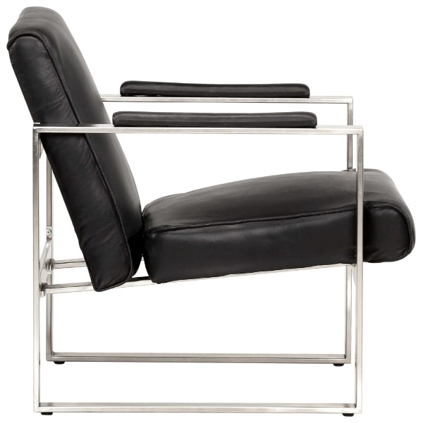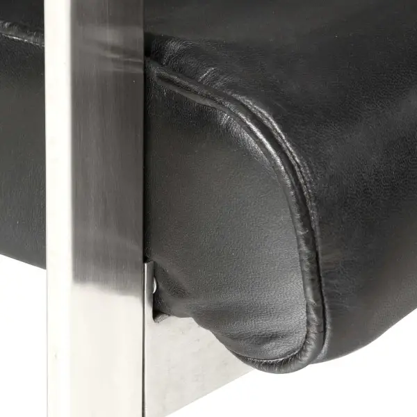 Ziegenleder bezogen und auch dick gepolstert, um höchsten Komfort zu bieten. Der pulverbeschichtete Stahlrahmen ist sehr robust und langlebig. Der Armsessel verleiht jedem Interieur eine industrielle Note und ist einfach zu montieren.