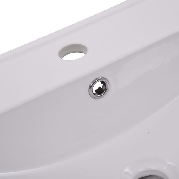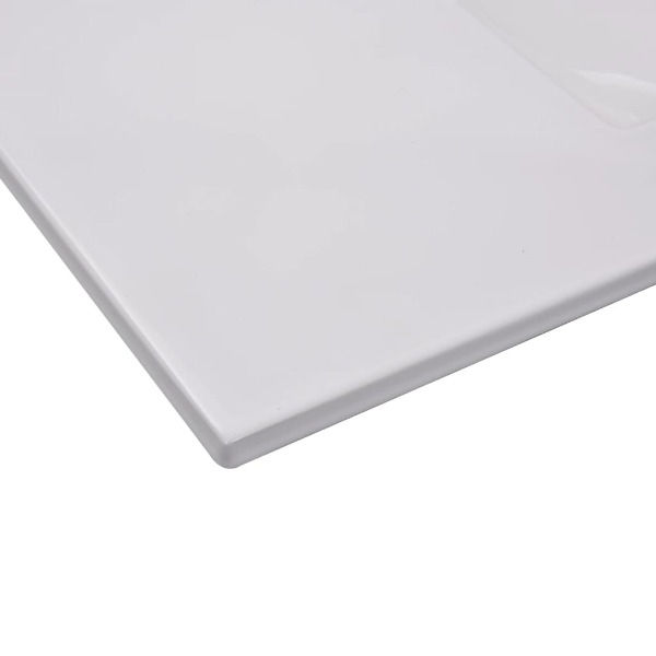 Gästetoilette. Das Waschbecken erfüllt sowohl eine praktische als auch ästhtetische Funktion. Dank seines modernen Designs passt dieses Waschbecken definitiv zu jedem Einrichtungsstil. Die Keramikspüle ist sehr leicht zu reinigen. Der Überlauf verhindert das Überlaufen von Wasser. Zusätzlich bringt seine glasierte Oberfläche ein modernes und zugleich elegantes Design mit sich. Bitte beachten Sie, dass der Wasserhahn und die Armatur nicht im Lieferumfang enthalten sind.