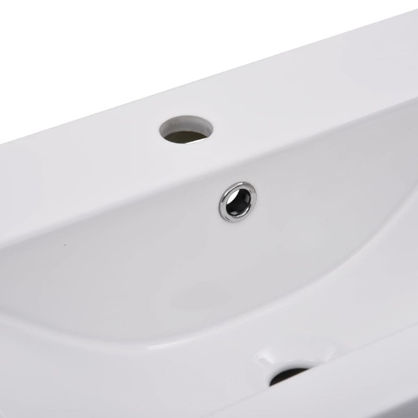 Gästetoilette. Das Waschbecken erfüllt sowohl eine praktische als auch ästhtetische Funktion. Dank seines modernen Designs passt dieses Waschbecken definitiv zu jedem Einrichtungsstil. Die Keramikspüle ist sehr leicht zu reinigen. Der Überlauf verhindert das Überlaufen von Wasser. Zusätzlich bringt seine glasierte Oberfläche ein modernes und zugleich elegantes Design mit sich. Bitte beachten Sie, dass der Wasserhahn und die Armatur nicht im Lieferumfang enthalten sind.