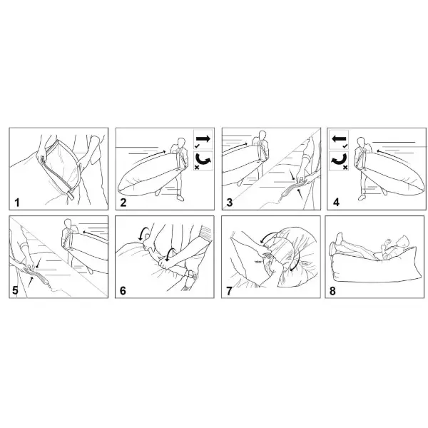Luftkissen ist aus starkem, reissfestem Polyester gefertigt und kann ein maximales Belastungsgewicht von 100 kg aushalten. Mit seinen aufgeblasenen Massen von 180×75×60 cm ist dieses Luftsofa für verschiedene Gelegenheiten, wie am Strand, auf einem Festival und im Stadtpark, geeignet. In wenigen Sekunden aufgeblasen - und die Entspannung kann beginnen. Darüber hinaus ist für dieses tragbare und leichte Luftkissen keine